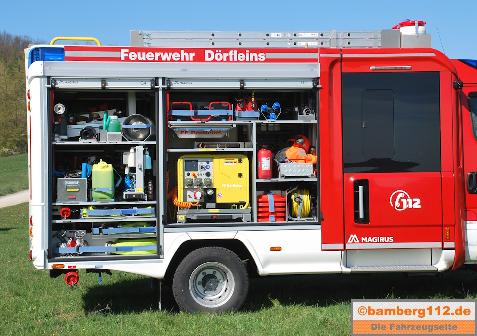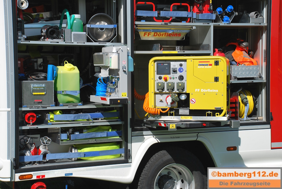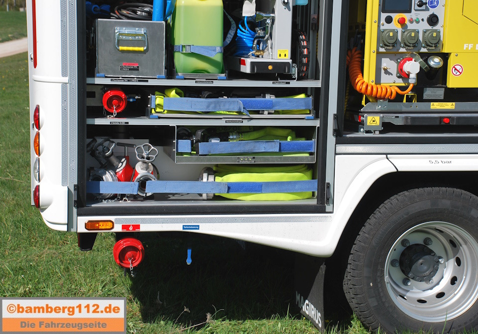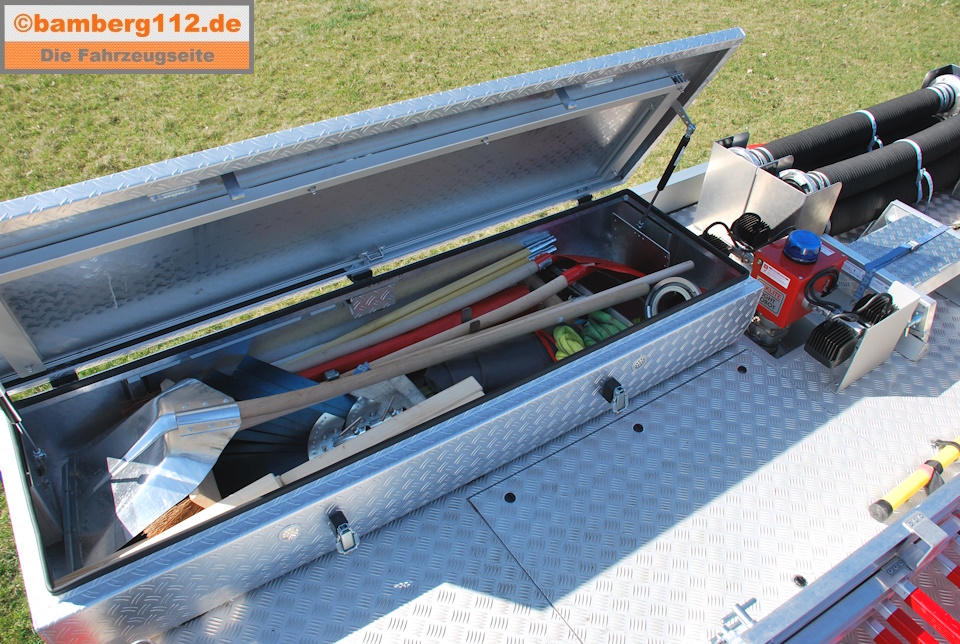 1 Waldbrandausrüstung, u. a. mit Löschrucksäcken, D-Verteiler, D-Schläuchen als Wechselmodul im Gerätehaus