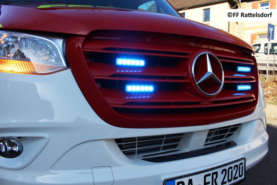 4 blaue LED-Blitzleuchten Fabr. Hänsch im Kühlergrill