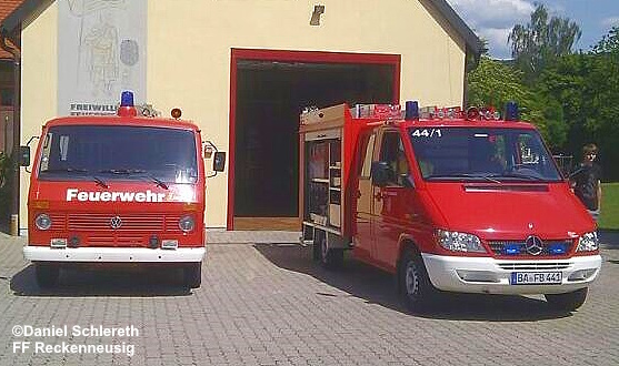 Unten: Das TSF im Juni 2012 bei der Übernahme durch die FF Reckenneusig mit seinem Vorgänger, einem TSF auf VW LT aus den 80ger Jahren.