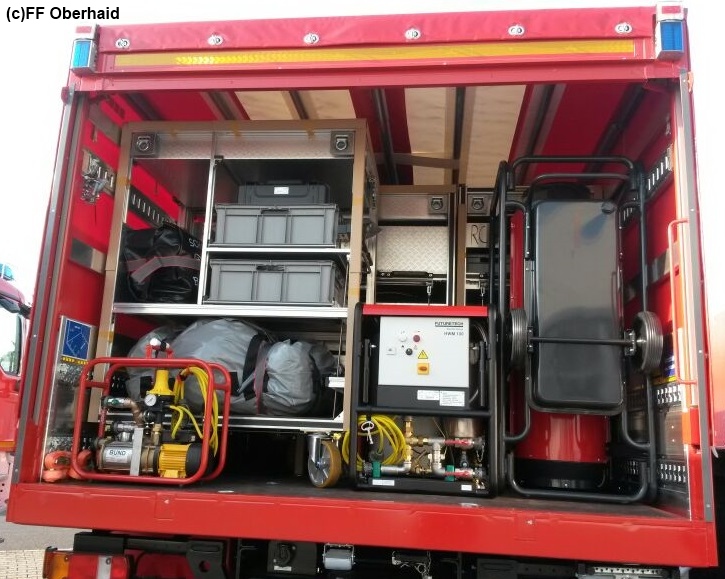 Auf dem Fahrzeug ist die komplette Ausstattung verlastet, die für den Aufbau und den Betrieb eines