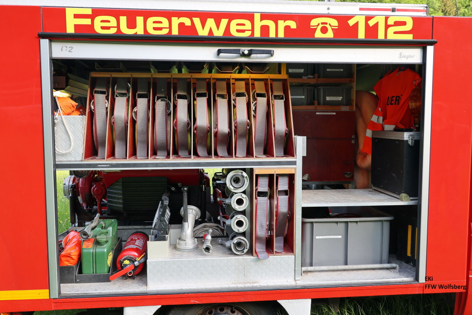 Eine Tauchpumpe sowie weiteres Schlauchmaterial kann im Bedarfsfall im TSF schnell nachbeladen werden.