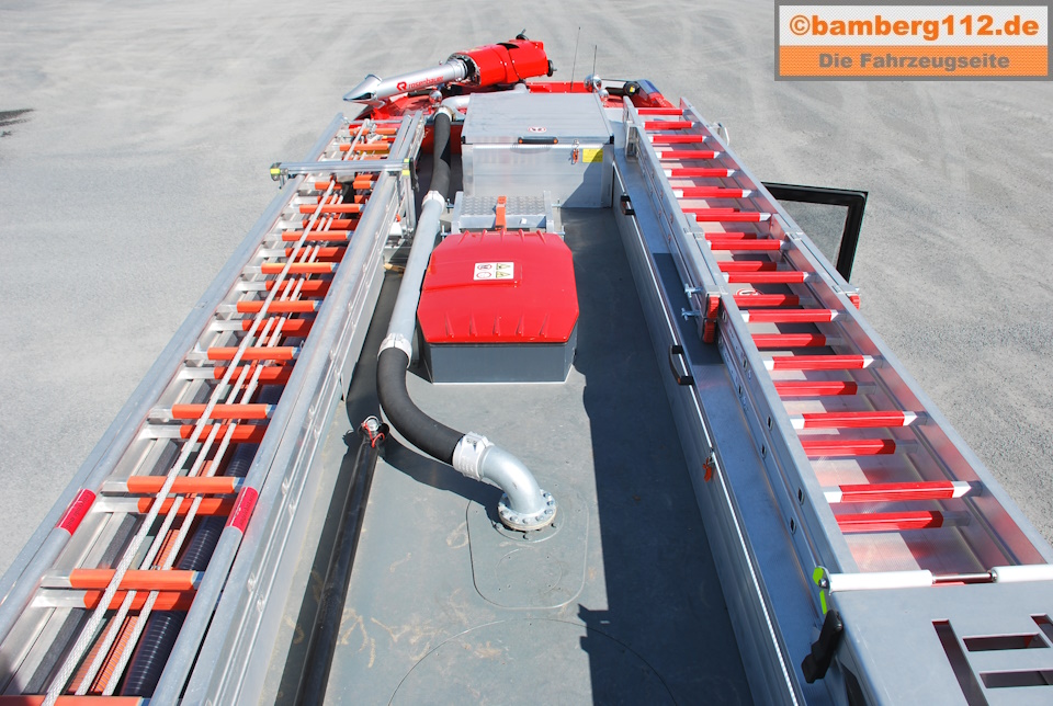 - 1 Dachmonitor Fabr. Rosenbauer RM25C, elektronisch gesteuert per Joystick im FH, Leistung bsi 2.500 L/Min bei 10 bar