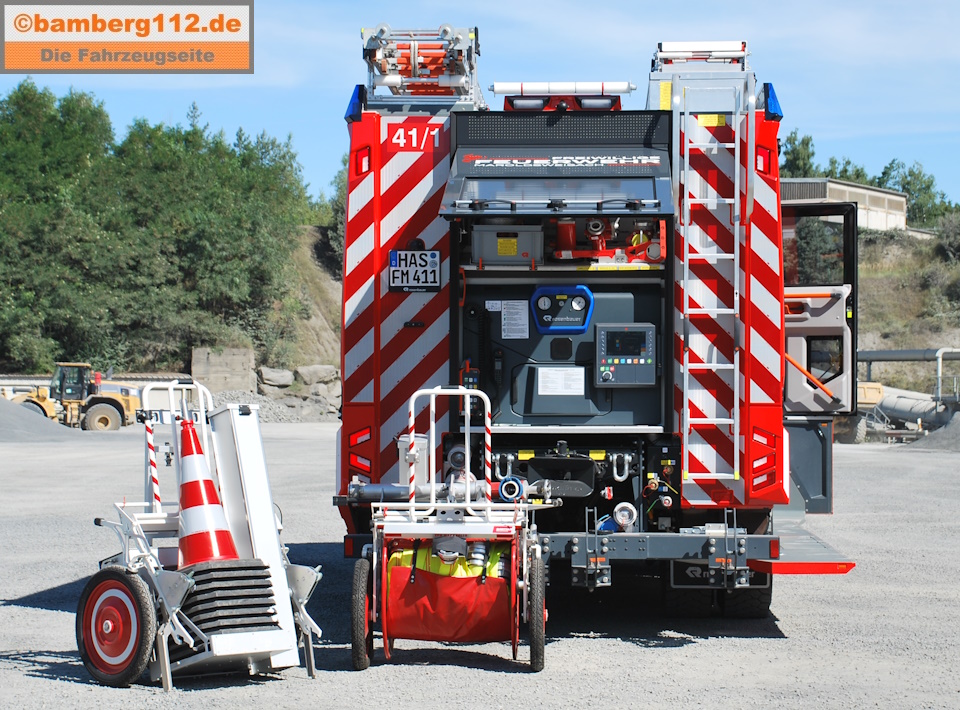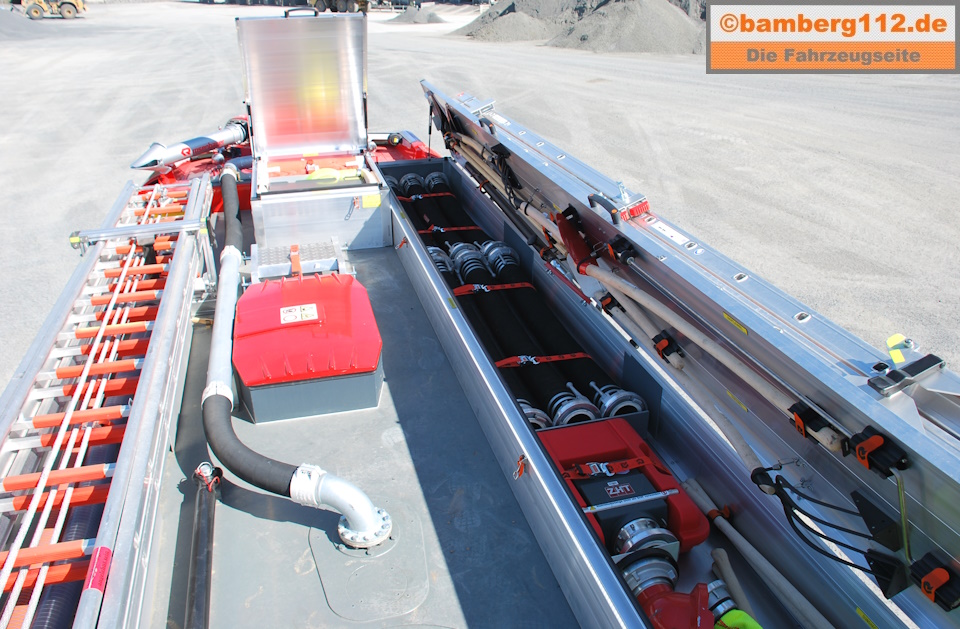 - 1 EPH Schlauch mit 1 Systemtrenner, 1 Standrohr 2B, 8 Druckschläuche B, 1 Überflurhydrantenschlüssel mit Ratsche, 1 Unterflurhydrantenschlüssel und 1 Warnrolle