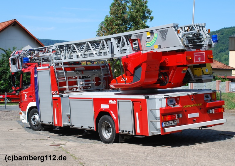 Bei dem Fahrzeug handelt es sich um den damaligen Prototyp der Drehleiter mit Gelenkteil der Firma Metz.